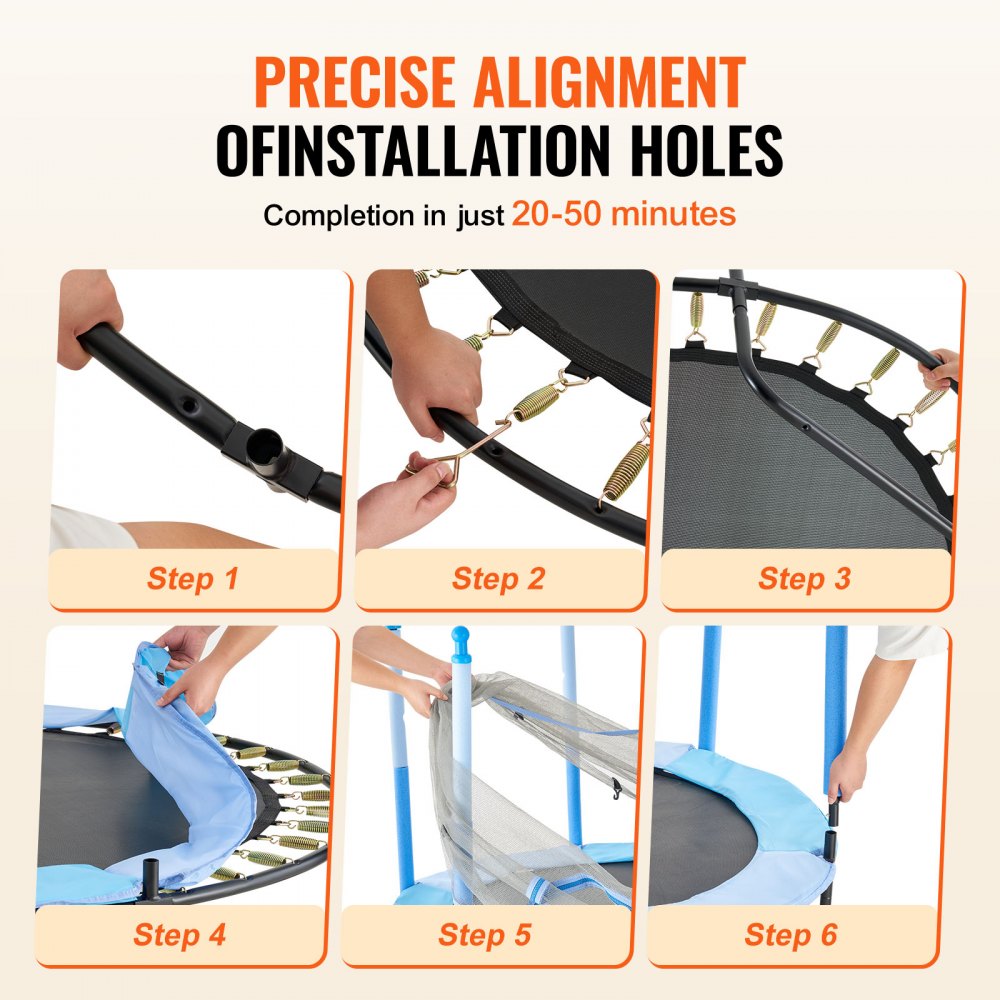 Vylepšená skákacia plocha: Skákacia plocha je integrovaná s bezpečnostným okrajom a vyznačuje sa robustnou konštrukciou pre zvýšenú ochranu. Vďaka 36 pružinám s maximálnou nosnosťou 120 kg (265 libier) zaisťuje naša vnútorná a vonkajšia batoľacia trampolína bezpečnosť pri každom skoku. Šesť bezpečnostných tyčí, 360° ochranná sieť a zips v tvare U poskytujú komplexnú ochranu vášho dieťaťa.