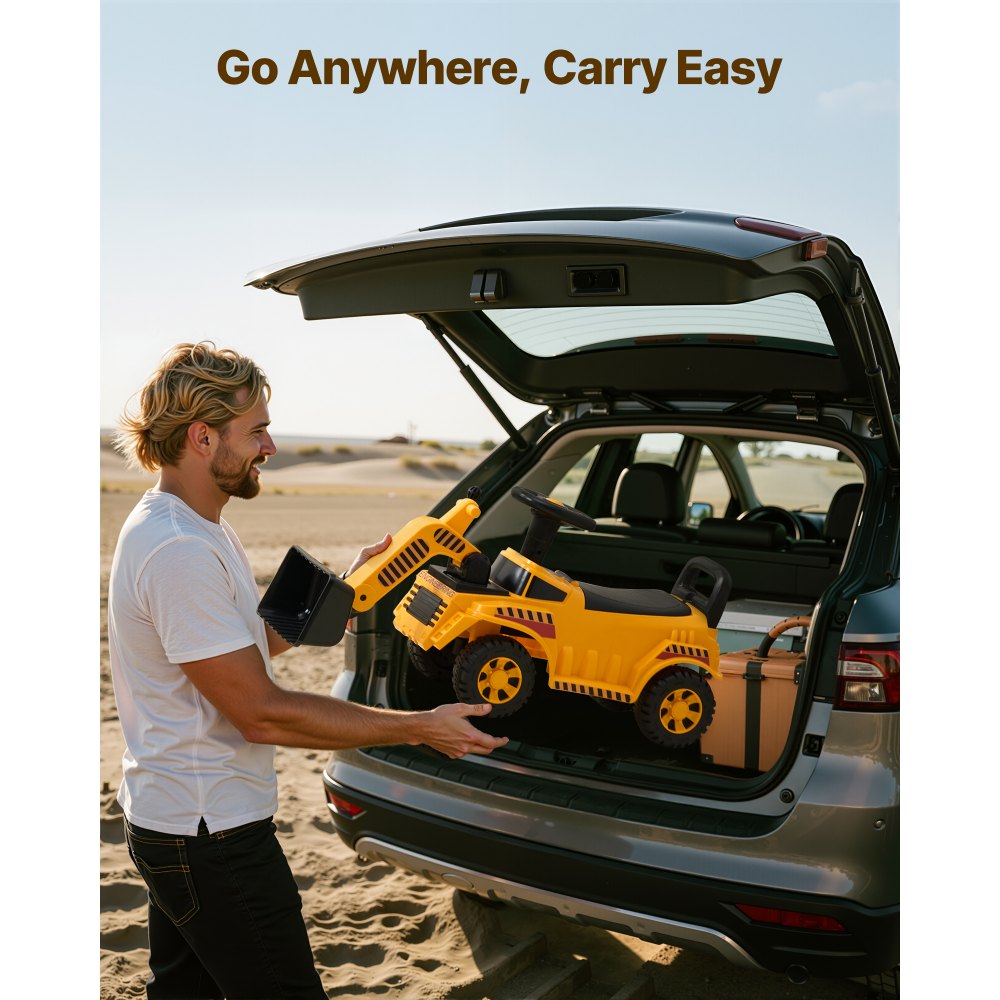 Detské autíčko na odpal, autíčko s bagrom pre batoľatá od 19 do 36 mesiacov, hračka s bagrom, buldozérom a úložným priestorom pod sedadlom, nosnosť 25 kg, chodítko od podlahy k nohám pre deti, žlté - Šport a rekreácia