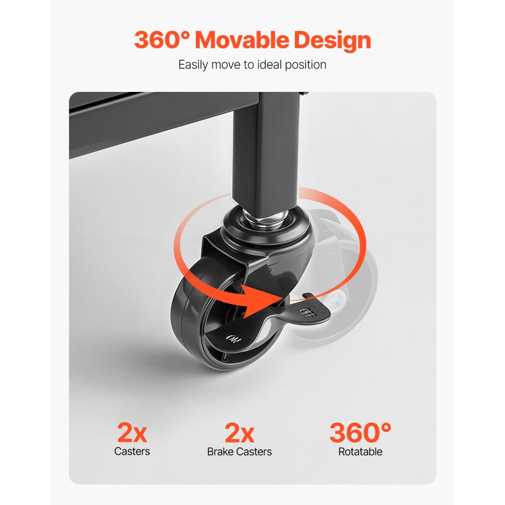 360° mobilita: Držiak na prúty do garáže je vybavený 4 odolnými priemyselnými kolesami a vstavaným 360° oceľovým otočným systémom. 2 z koliesok sú vybavené brzdami, čo uľahčuje ich upevnenie. Pohyblivá konštrukcia umožňuje prístup k rybárskemu náčiniu.