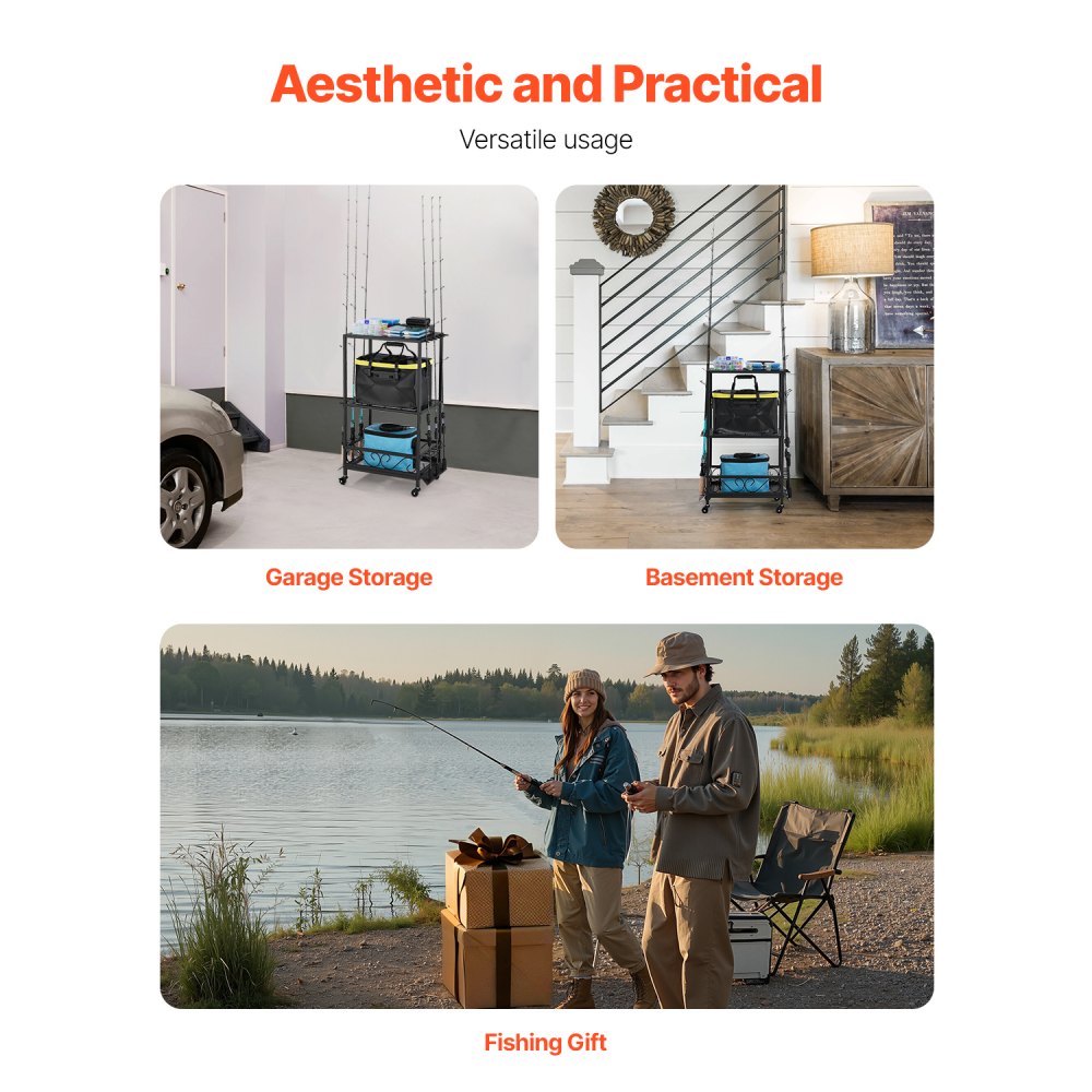 Držiak na rybárske prúty VEVOR na 10 prútov, mobilný stojan na rybárske prúty s kolieskami, organizér na rybárske náčinie do garáže, do interiéru, na uskladnenie príslušenstva a navijakov, darčeky pre mužov