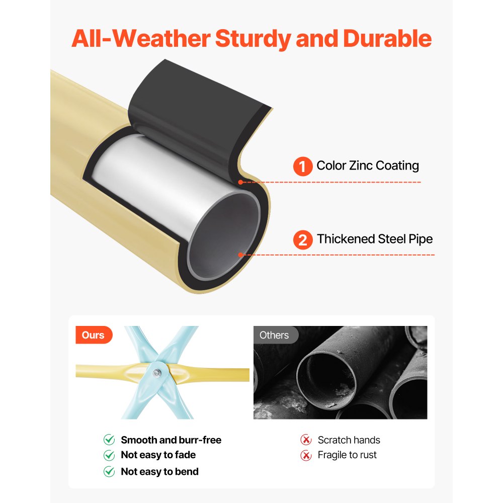 Robustná a stabilná konštrukcia: Táto preliezačka do preliezačky je vyrobená zo zosilnených oceľových rúrok a má stabilnú trojuholníkovú konštrukciu, vďaka čomu zostáva stabilná a bezpečná - bez trasenia alebo prevrátenia, keď deti šplhajú. Farebný zinkový povlak vyzerá atraktívne a dodáva silnú odolnosť voči hrdzi a korózii - ideálna na vonkajšie použitie.