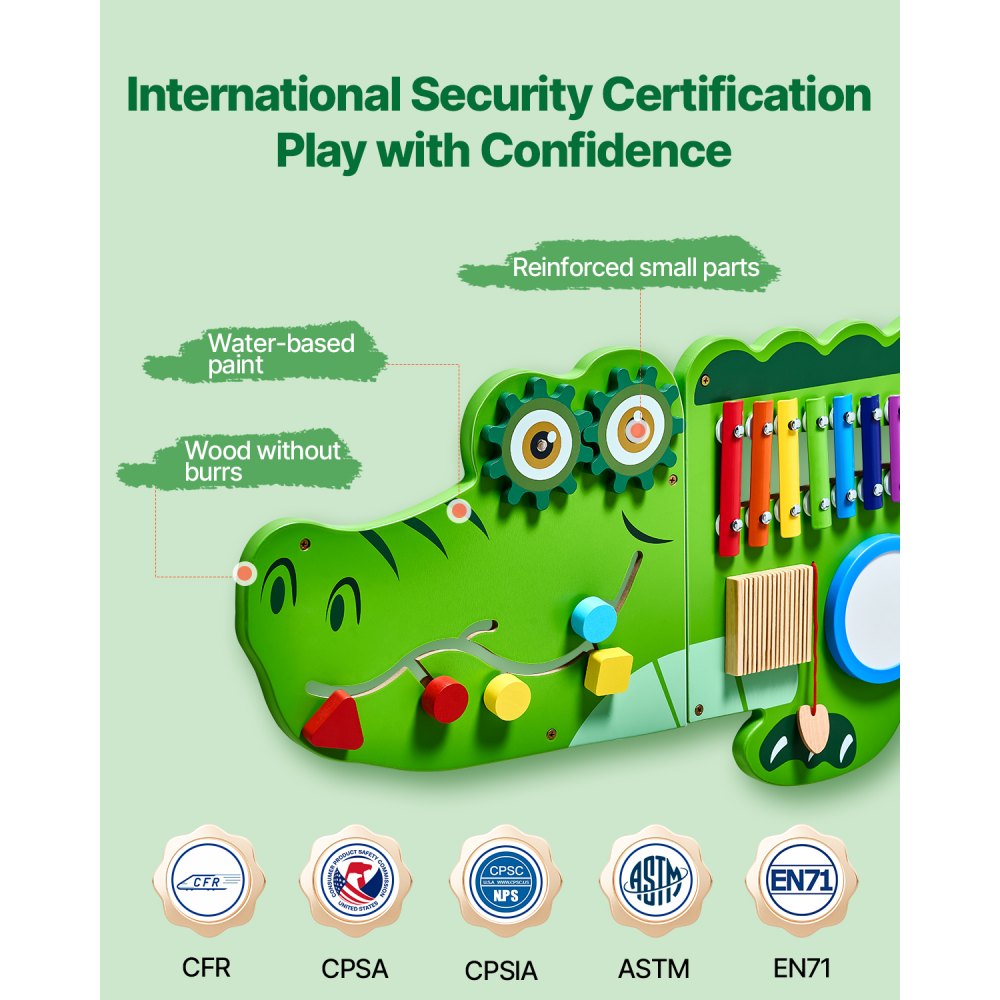Bezpečnosť na prvom mieste: Táto nástenná nástenka, vyrobená z MDF a farieb na vodnej báze, spĺňa medzinárodné bezpečnostné normy a zaručuje, že neobsahuje ostré hrany ani škodlivé chemikálie. Pevné spoje udržiavajú všetko v bezpečí a poskytujú rodičom pokoj, zatiaľ čo sa deti hrajú a objavujú svet!