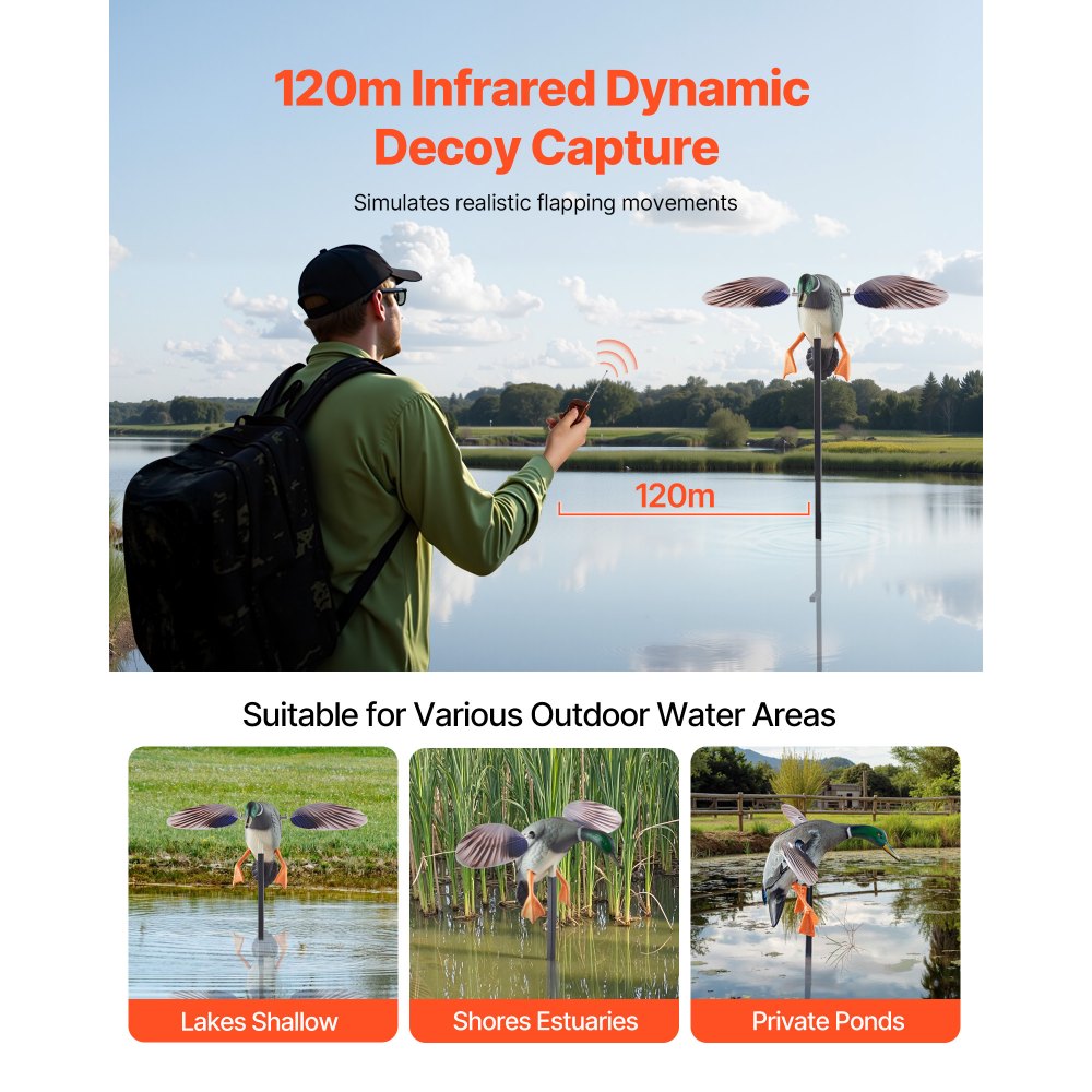 Ovládací systém: Vďaka vstavanému infračervenému diaľkovému ovládaniu a mechanizmu poháňanému bionickým motorom môžeme ovládať návnadu až do vzdialenosti 120 metrov. Návnada napodobňuje pohyby ako „mávanie krídel“, „otáčanie hlavy“ a „kĺzanie po vodnej hladine“.