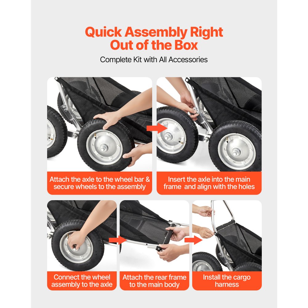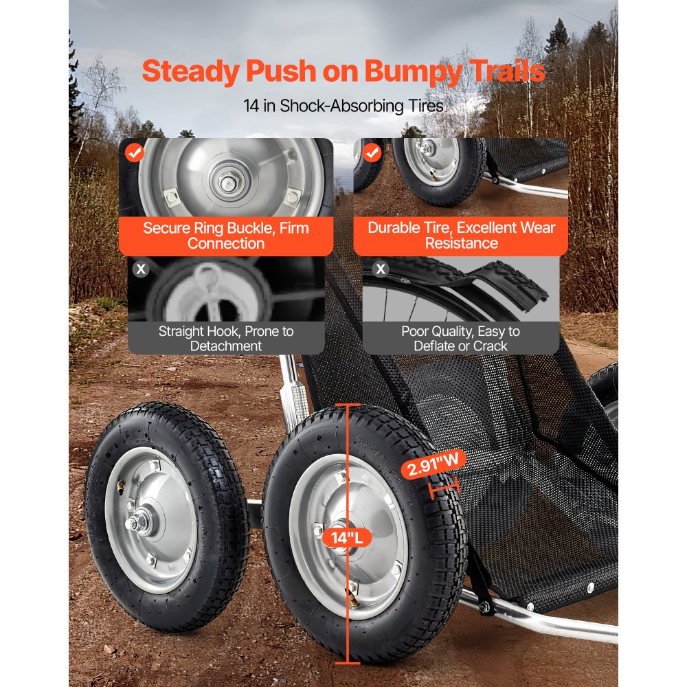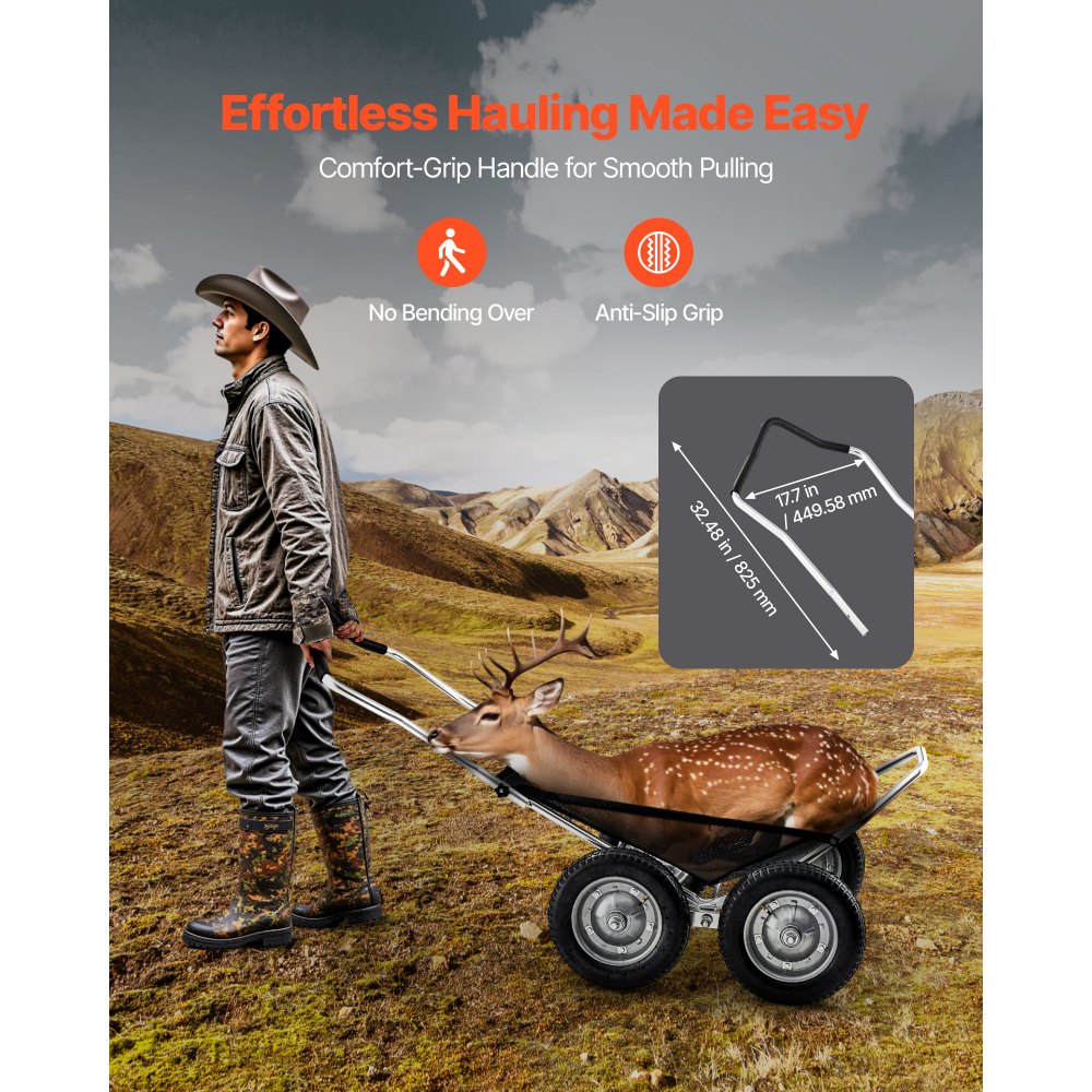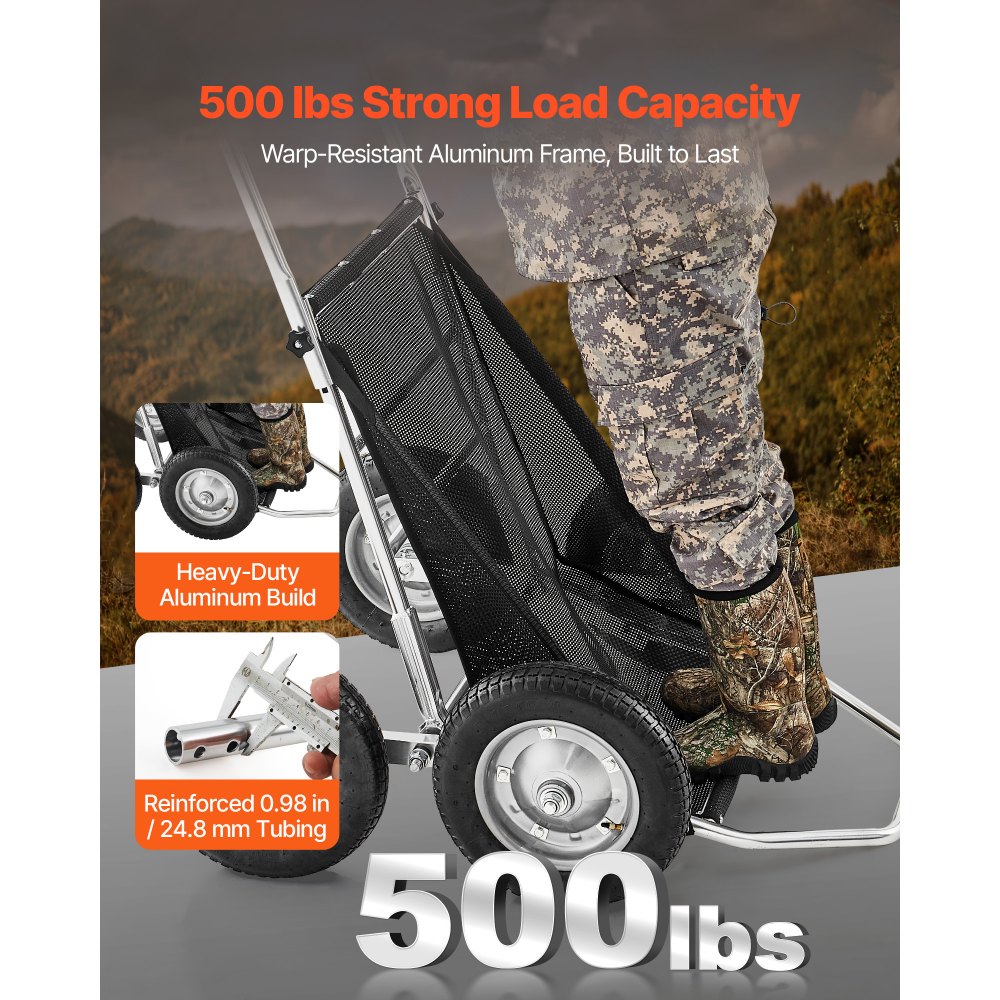 Poľovnícke vozíky VEVOR, prepravný vozík na jelene s nosnosťou 500 libier, vysokovýkonný pásový vozík, skladací terénny vozík na prepravu jeleňov s pneumatikami tlmiacimi nárazy, úžitkový vozík na poľovníctvo, rybolov, turistiku