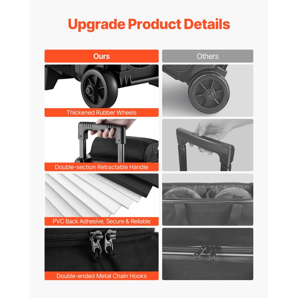 Bezpečná ochrana: Bowlingové vrecko na kolieskach má vlastnú PE základňu, PE penovú výplň a PVC lepidlo na zadnej strane, ktoré udrží vaše gule na mieste. Nárazuvzdorný dizajn a priedušné spodné otvory zabraňujú deformácii guľovitého povrchu vlhkosťou.