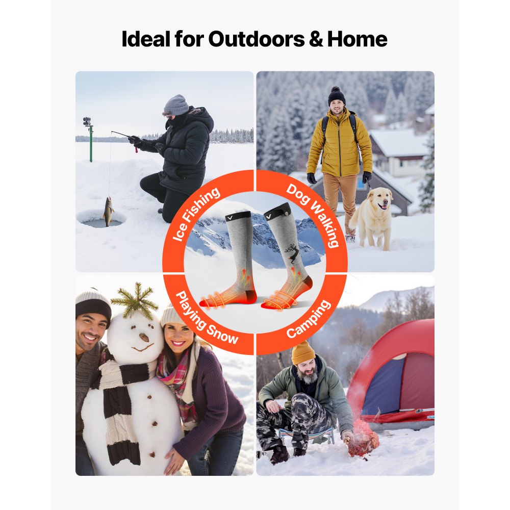 Všestranné pre všetky scenáre: Tieto vyhrievacie ponožky sú ideálne na akékoľvek outdoorové dobrodružstvo – lyžovanie, turistiku, rybolov na ľade alebo dokonca venčenie psa. Vhodné pre všetky vekové kategórie, udržia vás v teple a pohodlí za každých podmienok.
