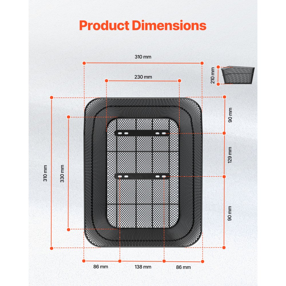 Zadný košík na bicykel VEVOR, drôtený košík na bicykel s nákladnou sieťou a vodotesným krytom, odolný kovový zadný košík na bicykel, pasuje na väčšinu zadných nosičov bicyklov, montážne nástroje sú súčasťou balenia