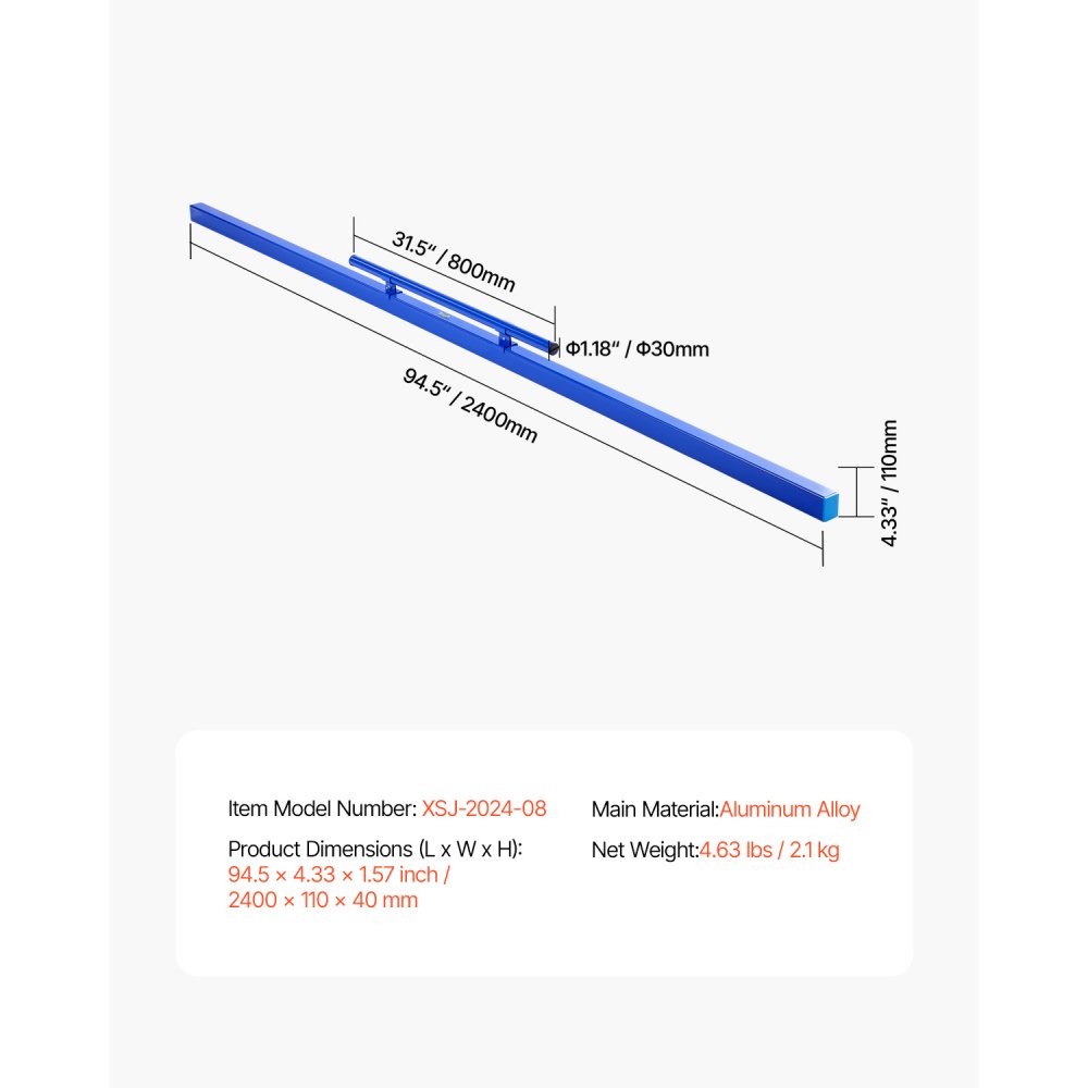 Betónová stierka VEVOR, 96-palcová stierka s vodováhou, jednoduché čistenie a dizajn s koncovým uzáverom, ľahká hliníková a obojstranná rukoväť na vyrovnávanie podláh, drobnú výstavbu a rekonštrukciu domov - Stavebníctvo a konštrukcie