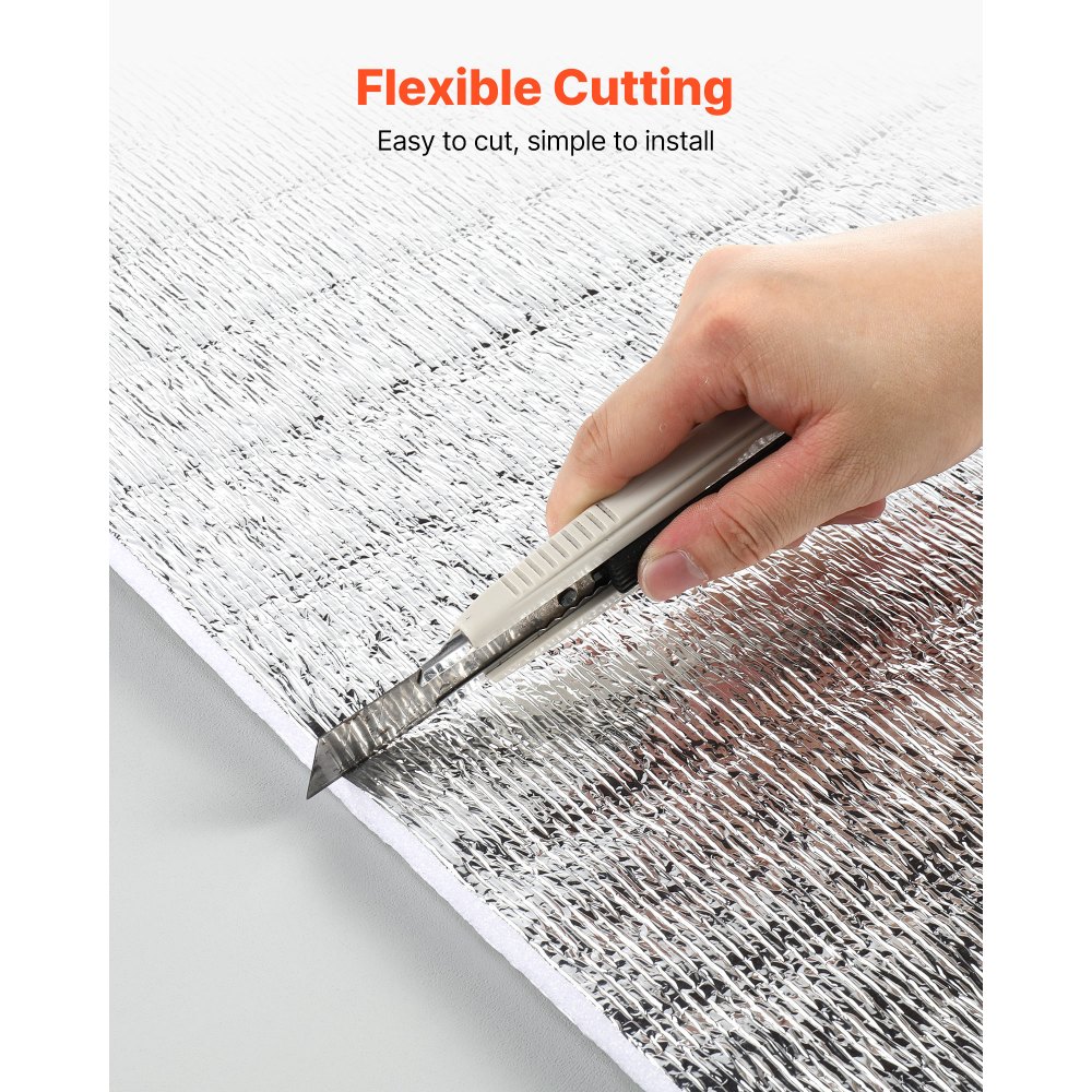 Jednoduchá inštalácia: Táto hliníková izolačná fólia sa ľahko reže a inštaluje, stačí si ju sami prispôsobiť veľkosti a tvaru podľa vašich potrieb. Keď sa nepoužíva, dá sa ľahko zložiť pre úsporu miesta a pohodlné prenášanie.