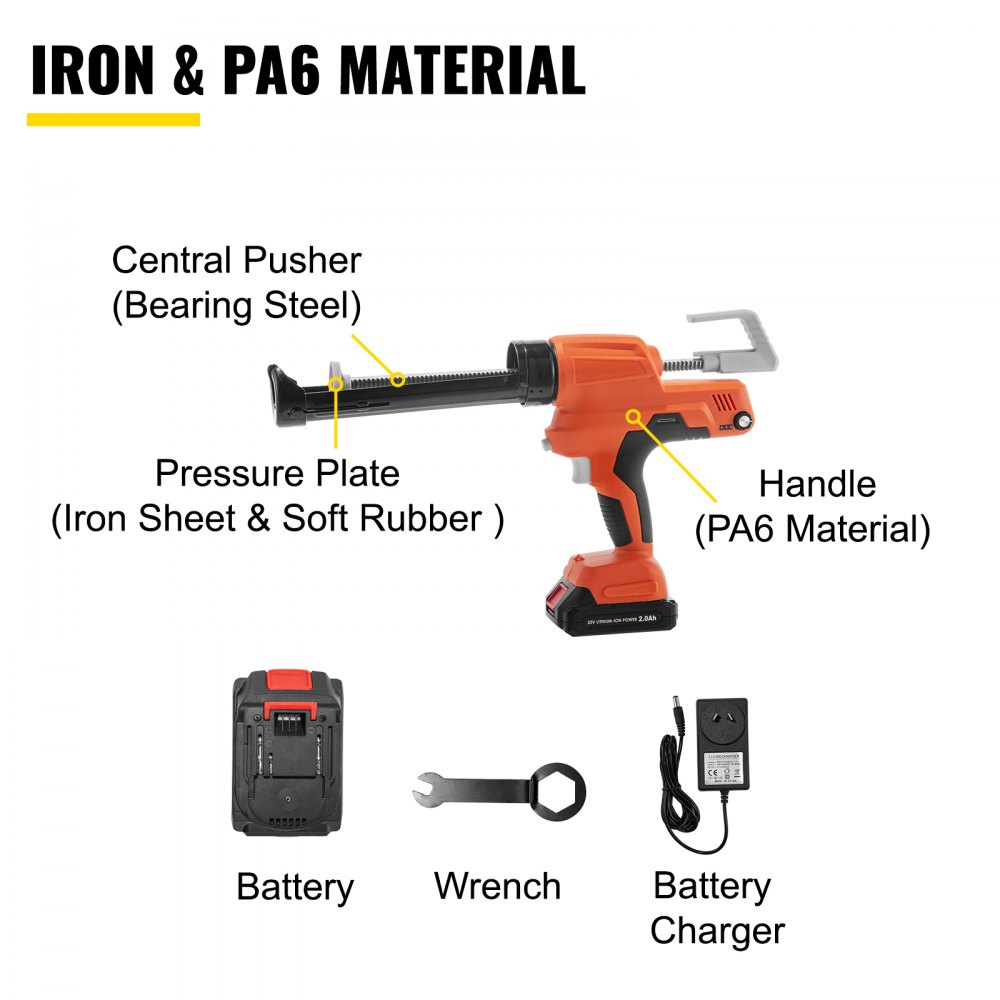 Efektívne a výkonné: Maximálny ťah akumulátorovej pištole na klobásy môže byť až 6 500 N, čo môže nielen ušetriť vašu energiu, ale môže byť ťah aj rovnomernejší. K dispozícii sú dve tlačidlá na ovládanie rýchlosti; jedným je nastavenie celkovej rýchlosti (nastavenie rýchlosti: 6) a druhým je zmena aktuálnej rýchlosti počas prevádzky. Rýchlosť ťahu našej klobásovej pištole je 0-0,37 palca / s a lepidlo môžete vytláčať veľmi hladko. Naša lepiaca pištoľ na klobásy je vhodná pre 10 oz kazetu.