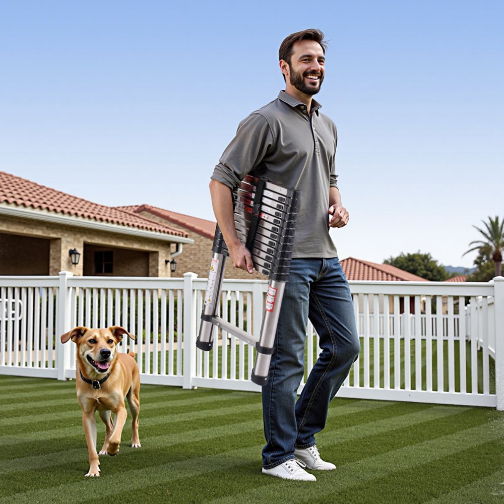 Všestranný dizajn: Tento teleskopický rebrík ponúka zasúvací dizajn, ktorý umožňuje manuálne nastavenie výšky. V úplne rozloženom stave dosahuje výšku 3,7 m a v zloženom stave je vysoký iba 84 cm.