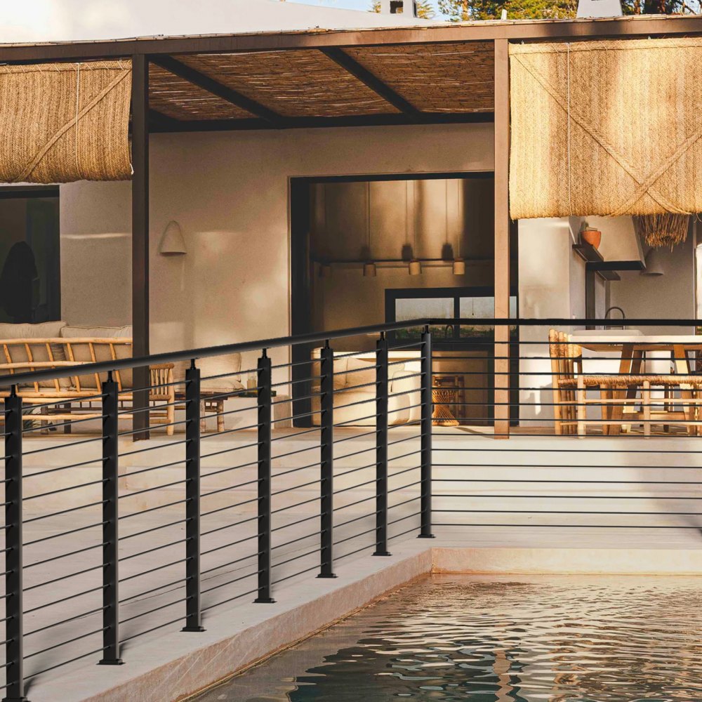 V súlade s normami: Vodorovný stĺpik zábradlia na palube má rozostup káblov 3 palce a rozostup medzi dvoma konštrukčnými stĺpikmi by zvyčajne nemal presiahnuť 4 stopy, aby prešiel testom gule s priemerom 4 palce.