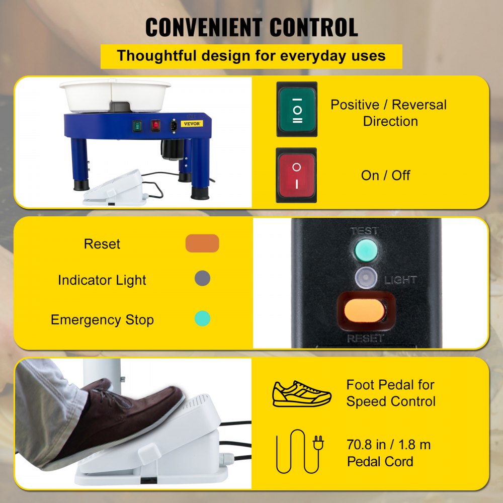 Hrnčiarsky kruh VEVOR, 14-palcový stroj na tvarovanie keramických kruhov, manuálne nastaviteľná rýchlosť 0-300 ot./min., zdvíhacia noha 0-7,8 palca, odnímateľná umývadlo s pedálom, sada príslušenstva na sochárske nástroje pre umelecké remeslá, DIY 220V - Výroba a oprava šperkov