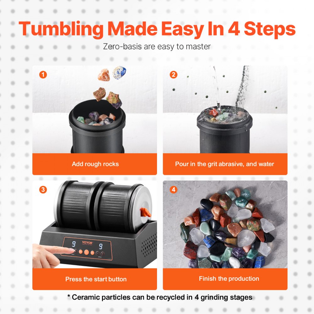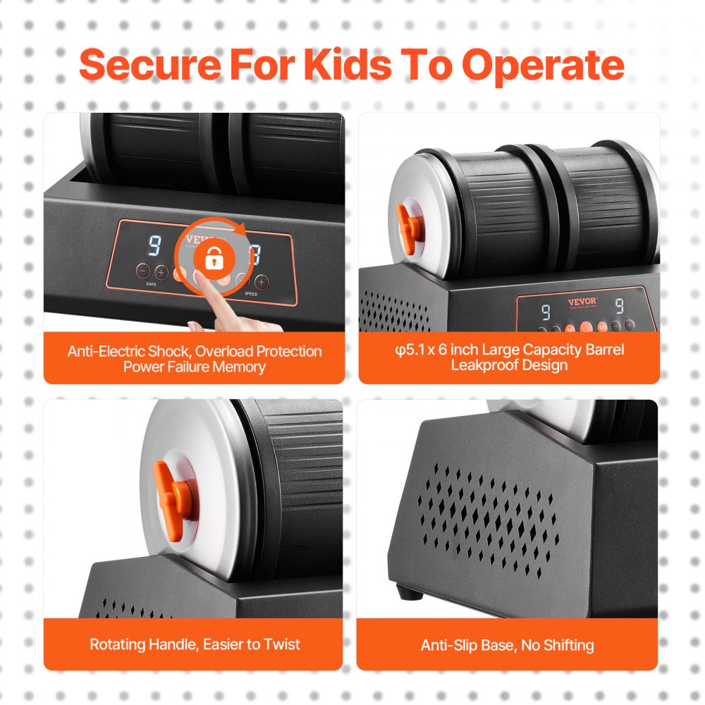 Vylepšené 9-rýchlostné ovládanie: Tento leštiaci stroj na kamene má ľahko použiteľný ovládací panel, ktorý vám umožňuje vybrať si z rýchlostí 1-9 a denného časovača 1-9. Či už ste 8-ročný začiatočník alebo nadšenec zberateľstva kameňov, budete si bez námahy užívať leštenie drahokamov a vytvárať remeslá porovnateľné s výtvormi majstra.