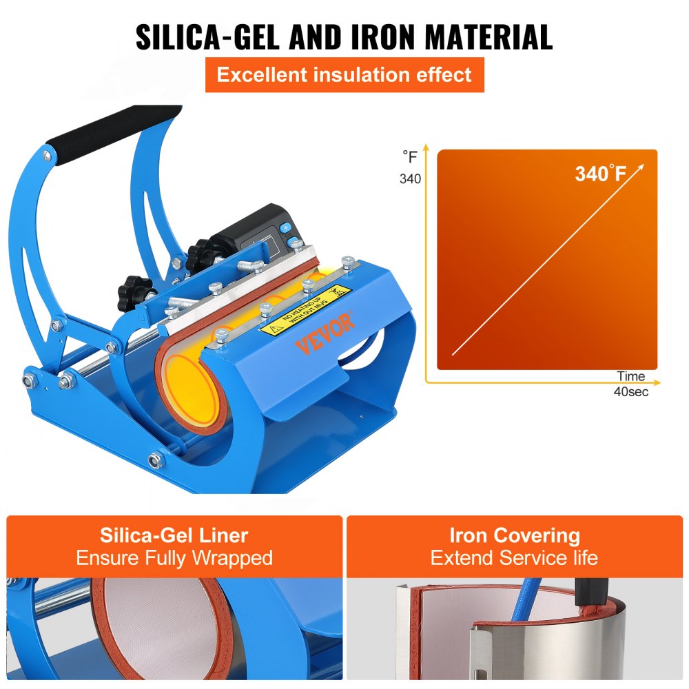 Tepelný lis na hrnčeky VEVOR, 11 oz/11,5 cm a 20 oz/22 cm s dvoma doskami, LCD lis na šálky s odnímateľnými sublimačnými podložkami na transfer, lis na tenké poháre na kávu pre domácich majstrov, potlač silikagélom, modrý