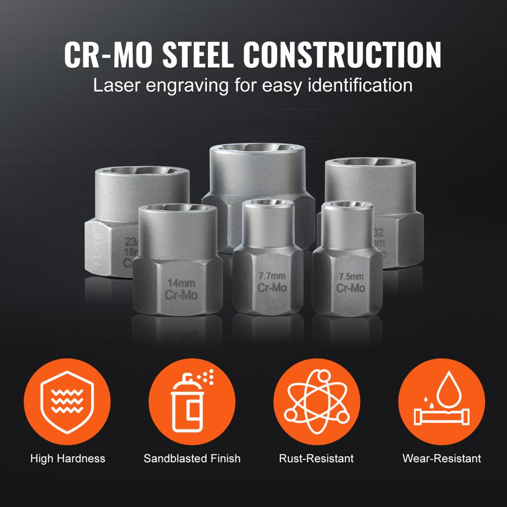 Sada vyťahovačov skrutiek VEVOR, 29-dielna sada na odstraňovanie skrutiek a matíc, 6 mm až 10 mm, sada vyťahovacích nástrčných kľúčov z CR-MO ocele 13/32\ - Záhrada a trávnik
