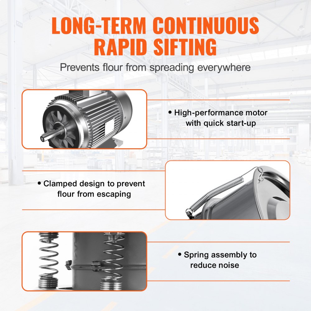 Všestranné použitie: Štvornohý podstavec a gumené podložky zaisťujú stabilnú prevádzku, zatiaľ čo predĺžený napájací kábel vám uľahčí prácu. Je vhodný do rôznych prostredí a nachádza široké využitie v reštauráciách, pekárňach, mlynoch a domácich kuchyniach.