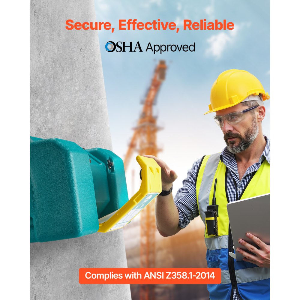 Jednoduchá inštalácia: Stanica prvej pomoci na výplach očí sa dodáva so všetkým potrebným príslušenstvom, ktoré umožňuje flexibilné umiestnenie v rôznych pracovných prostrediach, či už v interiéri alebo exteriéri, na pevných alebo dočasných miestach.